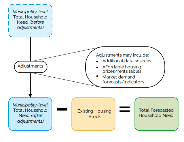 There are no practical limits to the types of adjustments that municipalities can apply during the process, simply that they “should substantiate the adjustment(s) by documenting the evidence and the decision-making process on which they rely”.
