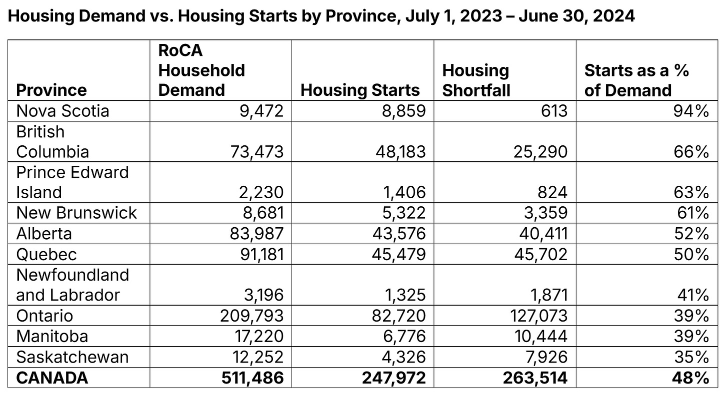 Canada needed to add 500,000 homes last year to keep up with population growth. It failed to hit even half of that.