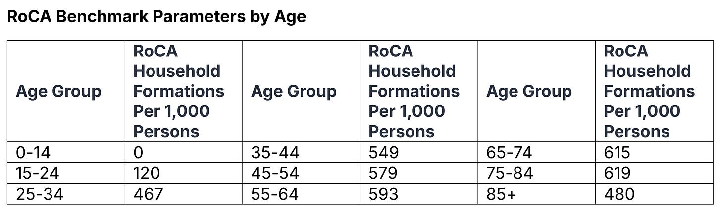 Calculating the number of households a place should have, given the structure of its population, is, in essence, calculating the number of homes it should have. That is the essence of the RoCA Benchmark.