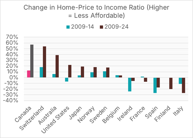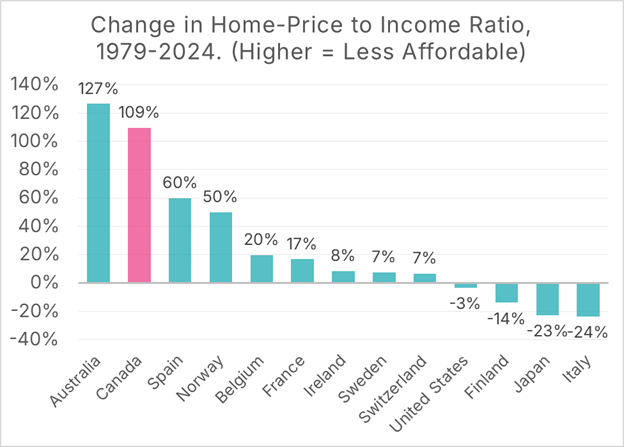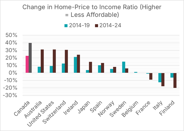 Among 23 OECD nations, Canada stands alone in how far affordability has fallen.
