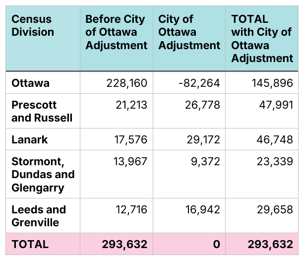 Note: Here “Ottawa Region” refers to the City of Ottawa, Prescott and Russell, Leeds and Grenville, Lanark, and Stormont, Dundas and Glengarry Census Divisions.