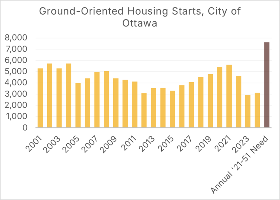 Given the current regulatory and tax environment in the City of Ottawa, the City will find it challenging to meet its currently far too low ground-oriented housing projections, let alone increase them.