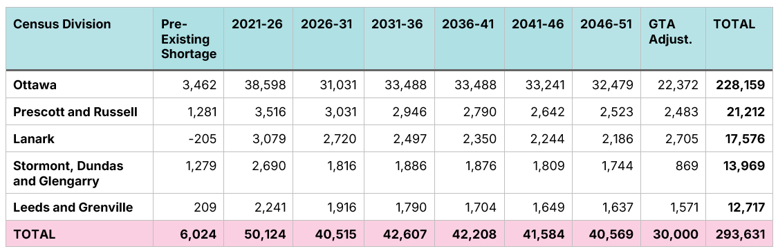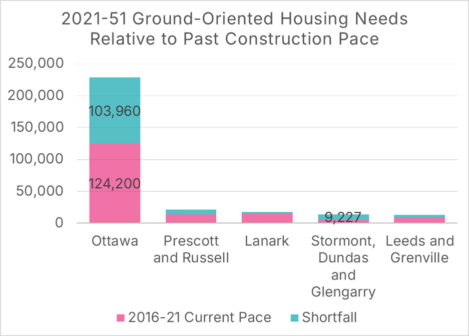 Before accounting for enhanced spillovers from the GTA, the Lanark and the Ottawa Region need 260,000 additional ground-oriented homes