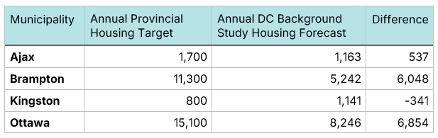 Sources: Ontario’s housing supply progress tracker, DC background studies