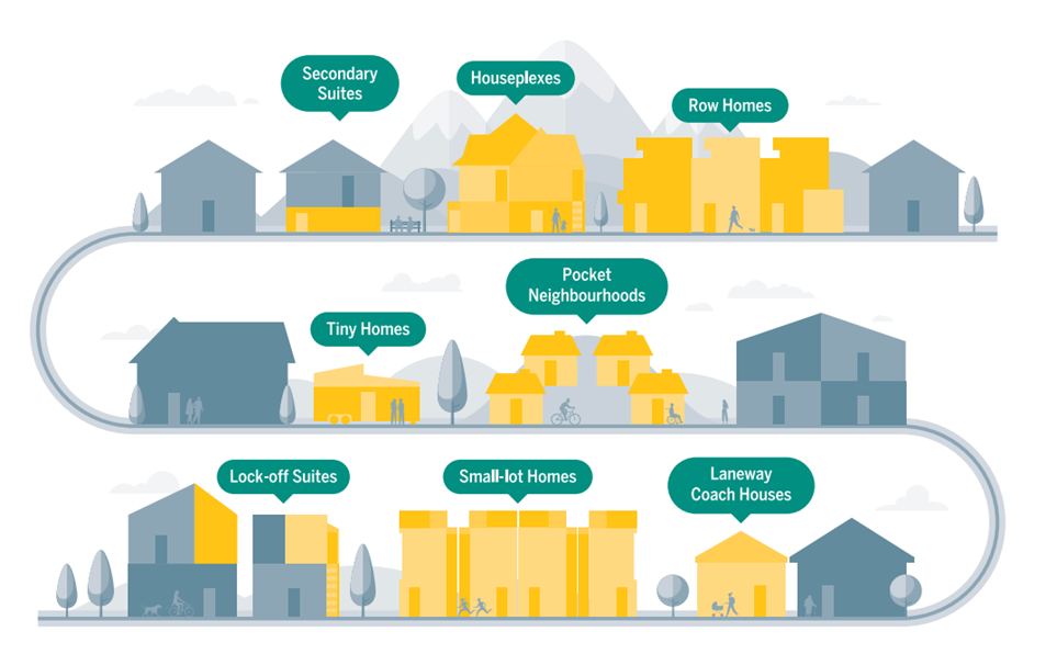 Gentle density housing, including multiplexes, accessory dwellings, and laneway homes, can create housing options in both new and existing neighbourhoods while maintaining the neighbourhood’s look and feel, as buildings are limited to a maximum of 3-4 storeys and 600 m².