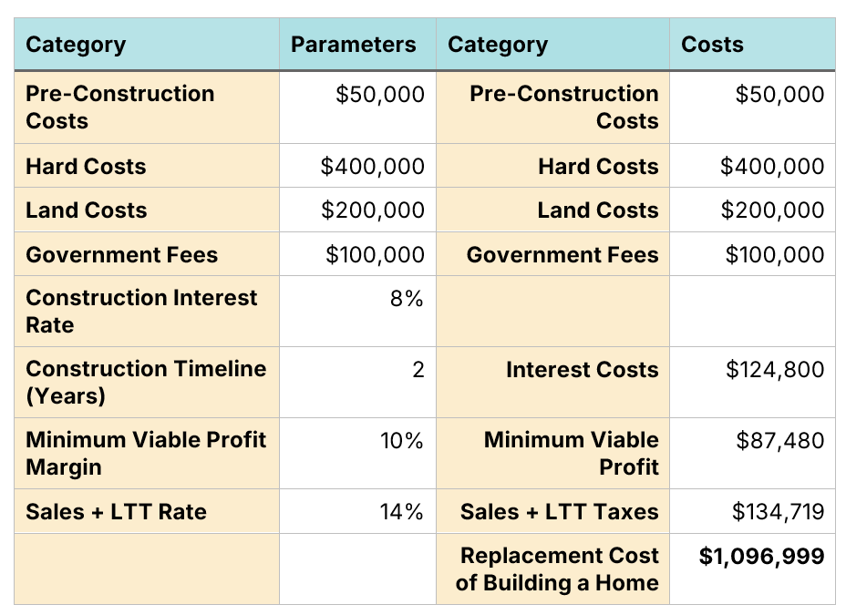 Given that Canada continues to have a middle-class affordability and housing crisis, convergence through home price increases would be disastrous. While markets will put downward pressure on some costs, governments can and should play a role in driving costs down to, or below, the minimum profitable production cost (also known as the replacement cost of building a home).