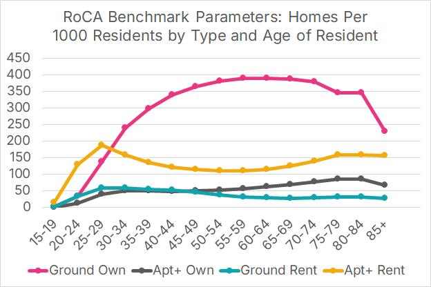 The RoCA Benchmark, while a powerful tool, suffers from the limitation that it treats all homes as identical. To review, the RoCA Benchmark estimates how many homes a place should have using the following parameters: