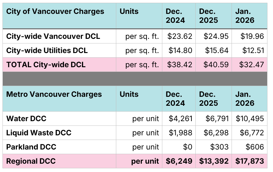 Metro Vancouver didn’t follow suit: Despite acknowledging that development charges deter construction, Metro Vancouver left large DCC increases in place, including a hike taking effect January 1, 2026.