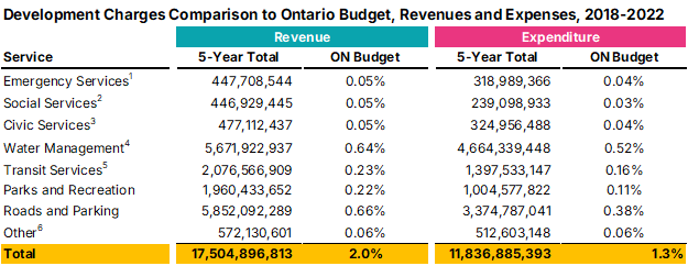 Moving costs off will not bankrupt governments or cause other taxes to skyrocket. Although development charge rates are high, only $2.4 billion in development charge revenue is spent annually. The development charge burden is high, not because of the overall dollar amount, but because these expenses are placed on a relatively small pool of new renters and homebuyers.
