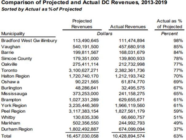 Development charges have several drawbacks as a revenue tool for municipalities. One drawback is predictability, as municipalities routinely collect and spend significantly less development charge money than they forecast.