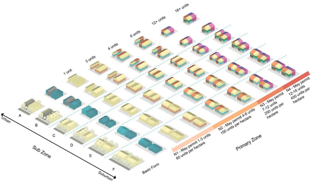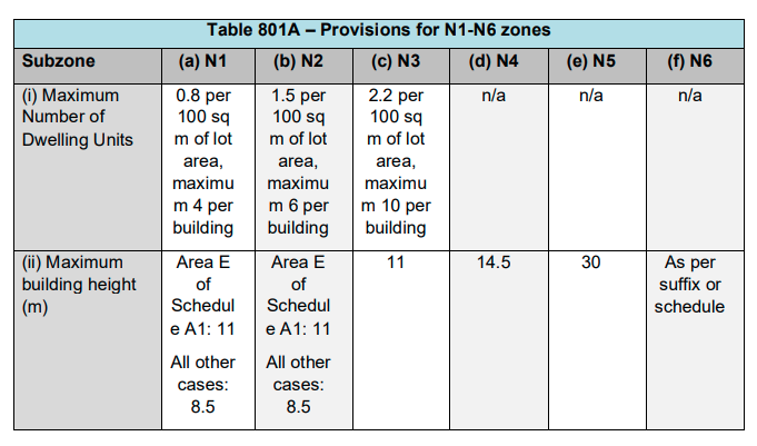 However, the real differences are in the zones themselves. The six zones differ by height limits, the maximum number of units per lot, and the maximum density of units. While the higher density N3 through N6 zones are consistent across the city (though individual units of lots may contain exceptions), the rules governing N1 and N2 differ by region.