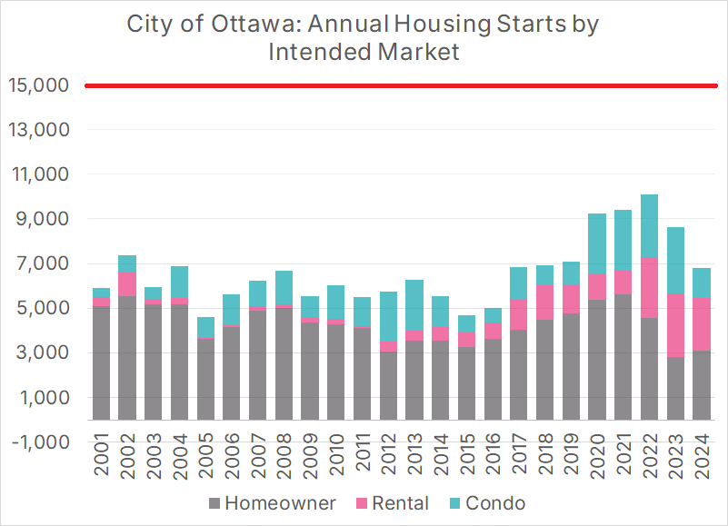 Annual housing starts in the City of Ottawa are less than half of the provincial target.