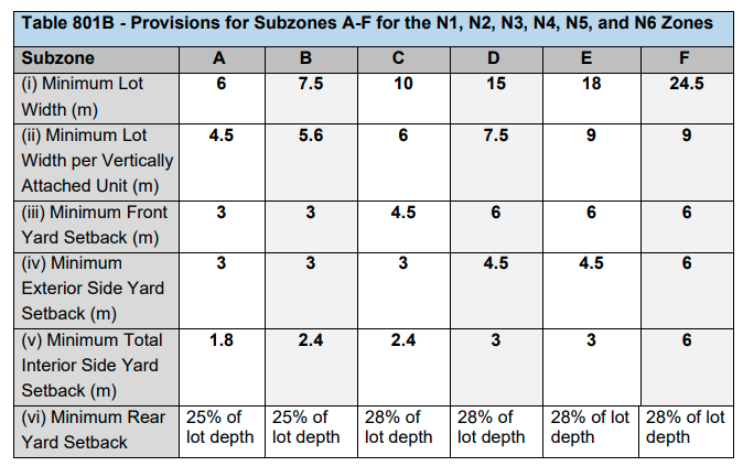 Figure 5: Provisions for N1-N6 Zones, Proposed City of Ottawa Zoning By-Law