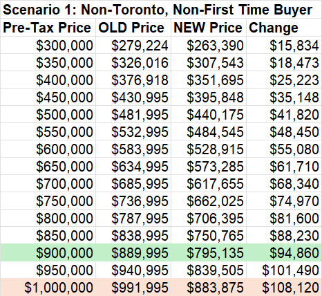 In Ontario, this would immediately drop the price of a $900,000 new home to $800,000.