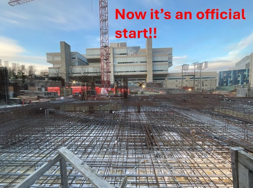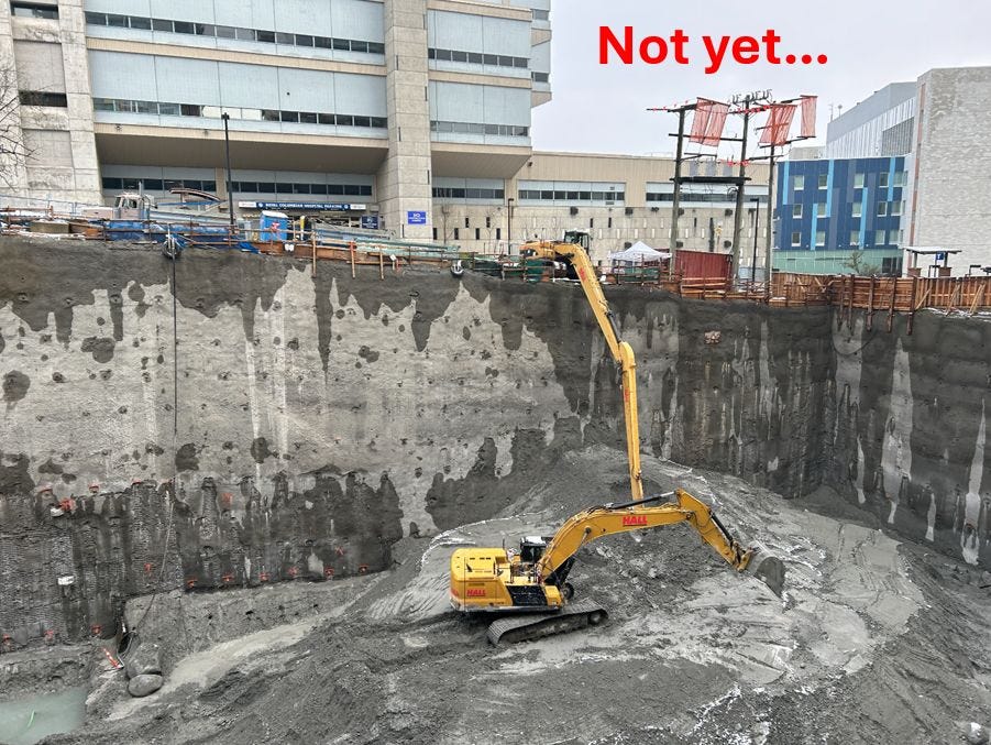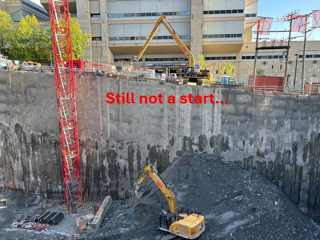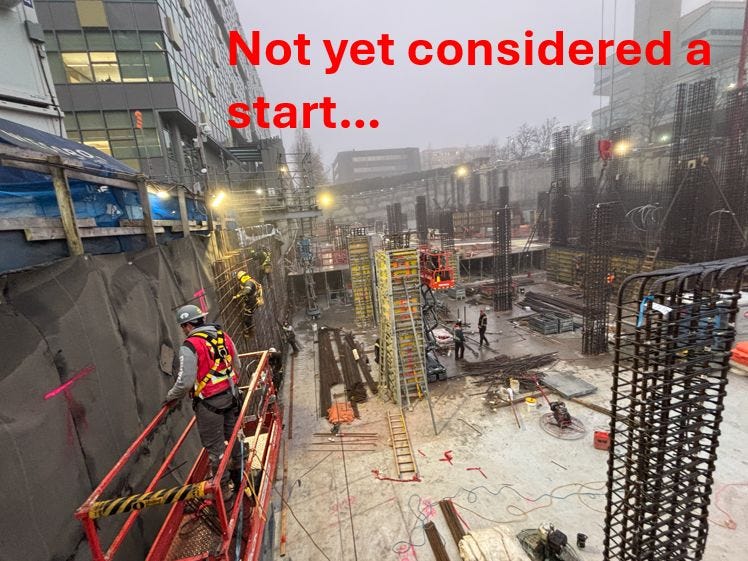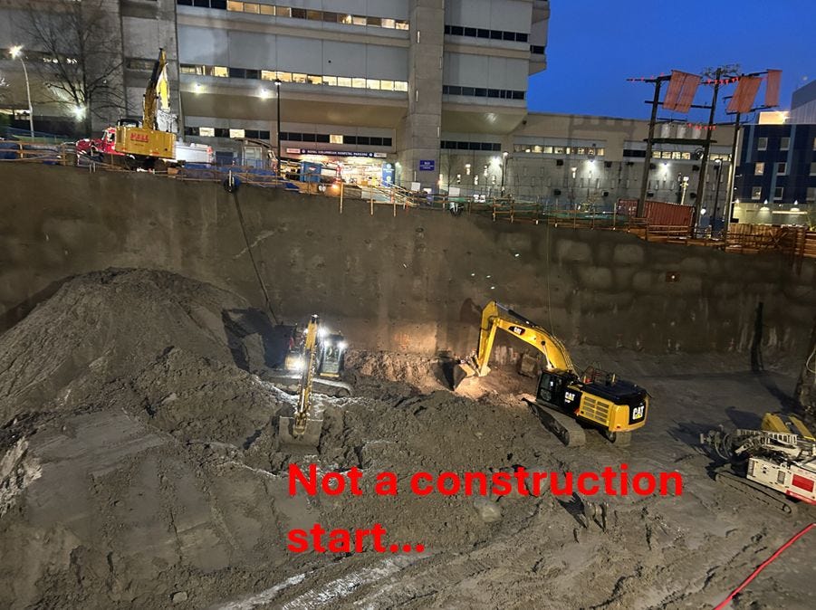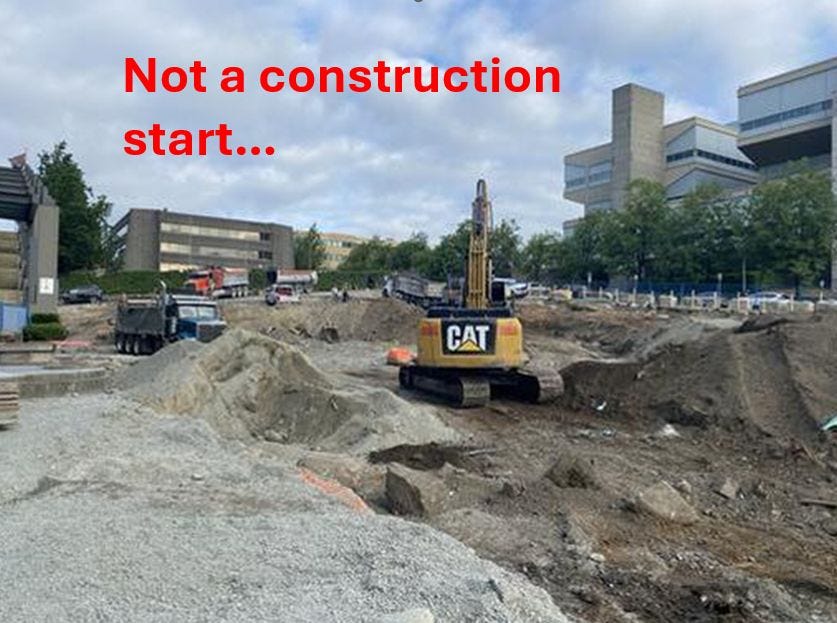 Going into fall 2024, over a year after on-site work had started, and this is clearly not just a “large hole in the ground”, yet it is still not classified as a construction start.